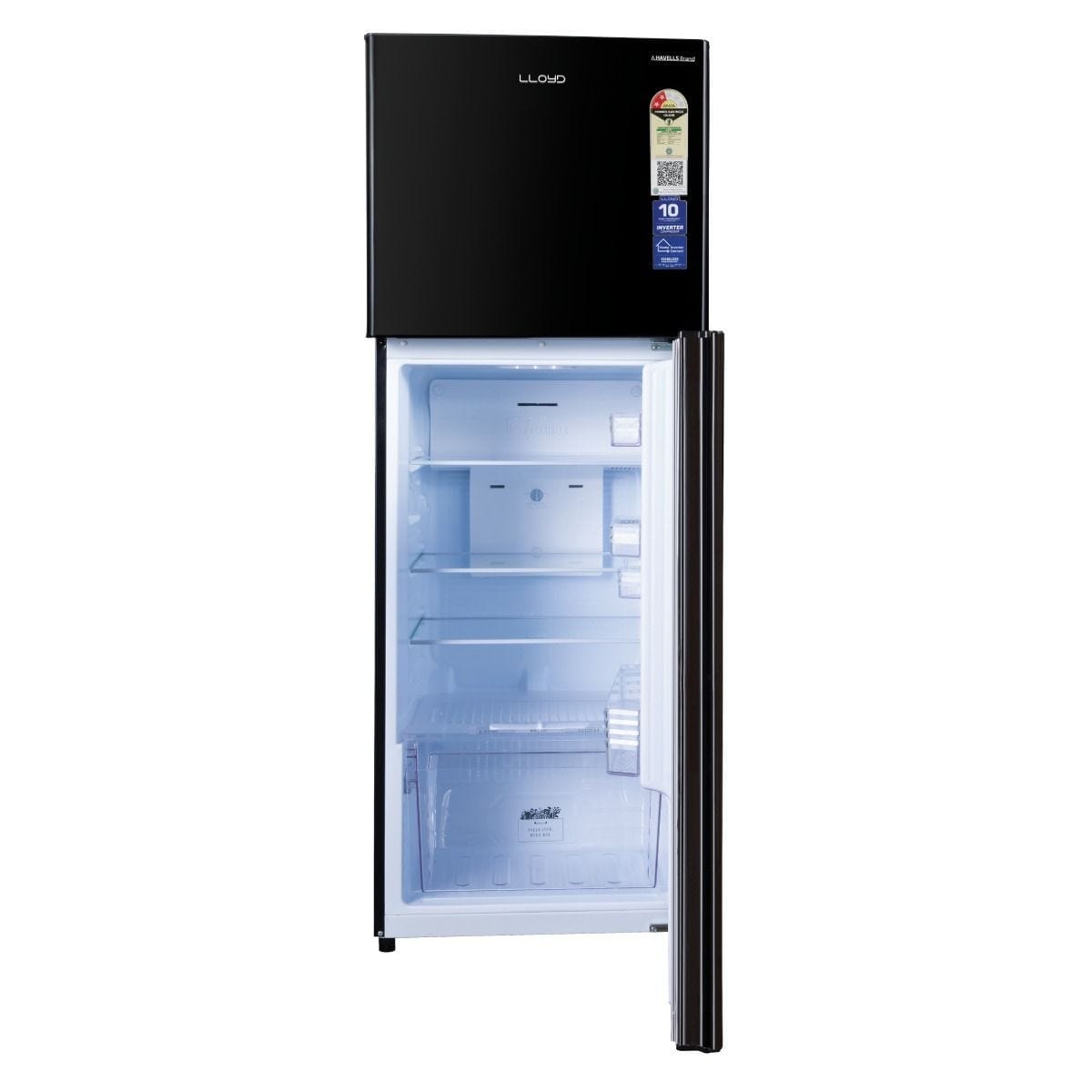 Upgrade your kitchen with the Lloyd 310 L Frost Free Refrigerator in sleek Metallic Black. With its 2 Star rating and Inverter Compressor, it maintains stable cooling while consuming less energy, ensuring long-lasting freshness.